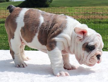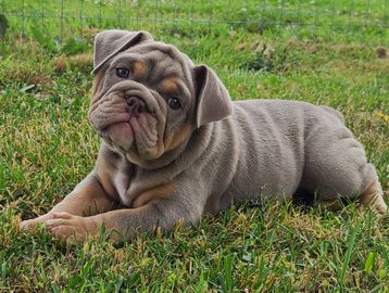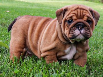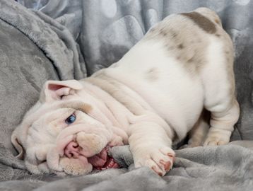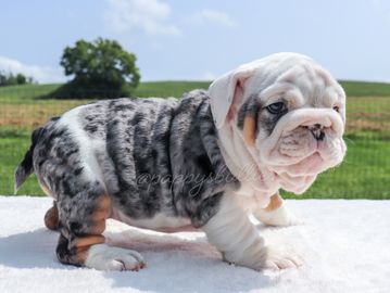 Genetic makeup plays a crucial role in determining the color of a bulldog's coat. This intricate process involves multiple loci on chromosomes, each with various alleles that can be dominant or recessive. Fun fact: The the Merle gene will override the Seal Gene, and the Seal Gene will override the Black & Tan gene. Bulldogs inherit genetic material from both parents, resulting in a unique combination that determines their final color. To ensure the well-being of the breed, it's essential to understand the genetic testing options available before breeding or acquiring a bulldog pup. Bulldog Club of America has a great chart on what a "Proper" English Bulldog should look like (click here). You will also hear words like Thick, Micro (meaning they are just shorter), Stacked, Fully Suited (less than 10% white) and Piebald (white patterns like a dairy cow) that breeders use to describe or sell their bulldogs.
