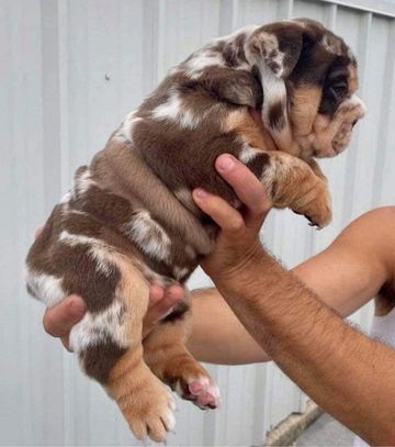 This is a Beanies Bullies production: This little chocolate merle boy has some beautiful and unique markings.